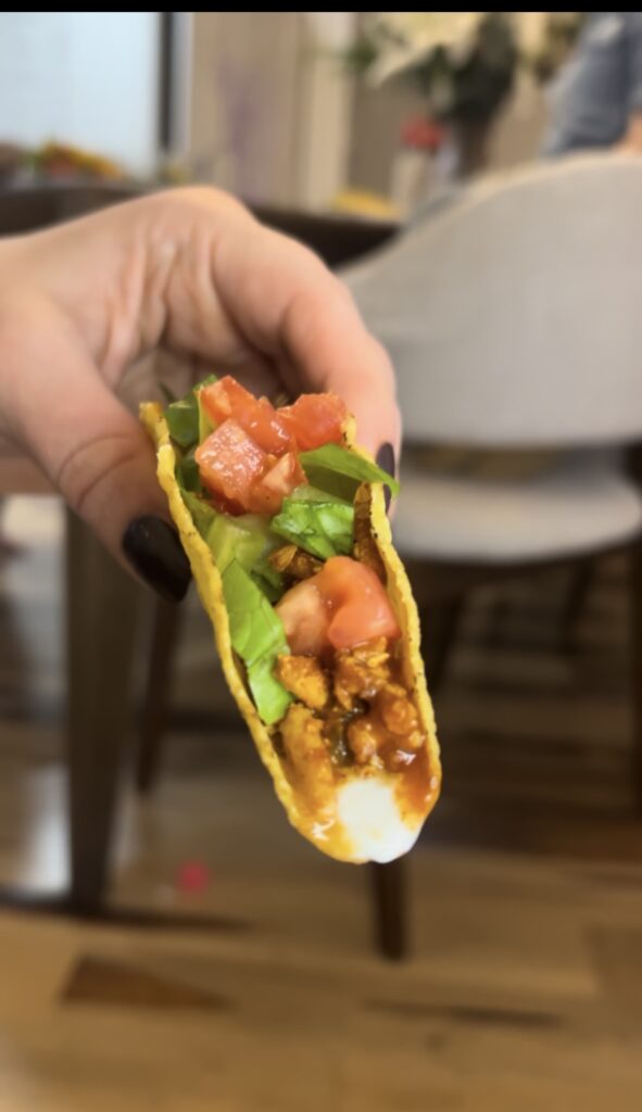 • Greek yogurt instead of sour cream: I know it sounds like a wellness girlie swap but honestly the texture is so similar and you’re getting way more protein. I layer it on the BOTTOM of the tortilla with the ground turkey on top and the way it gets warm just makes it 10X better.